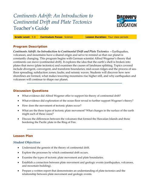 Continents Adrift Video Questions From Discovery Education And Answers Docx Name Period Date Discovery Education Continents Adrift An Introduction To Course Hero